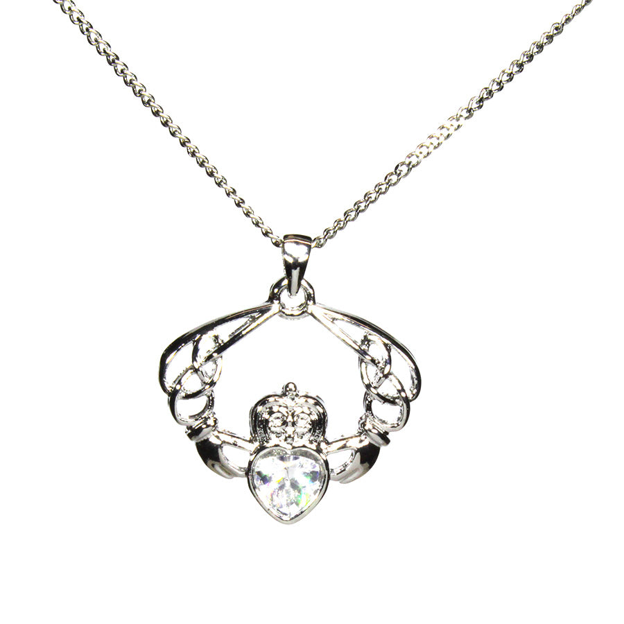 \nBuy this beautiful rhodium plated Celtic Short Claddagh pendant adorned with a crystal from our Celtic Collection. Every piece in the collection is unusual, these exquisite and eye catching designs will make a perfect addition to any outfit at any time of the year. Our designs from the Celtic Collection will make a perfect and unusual gift or why not just a treat for yourself? \n
