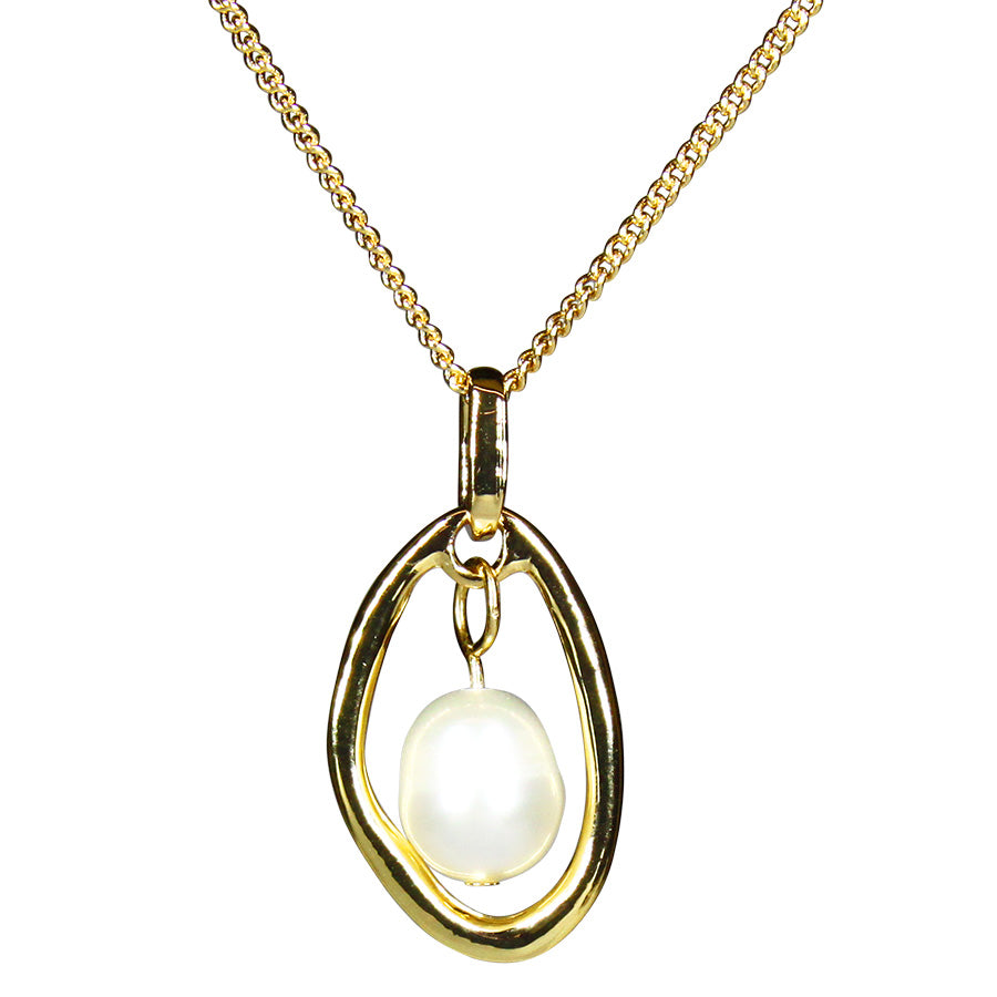 Gold Irregular Hoop Pearl Pendant Necklace (C3011)
